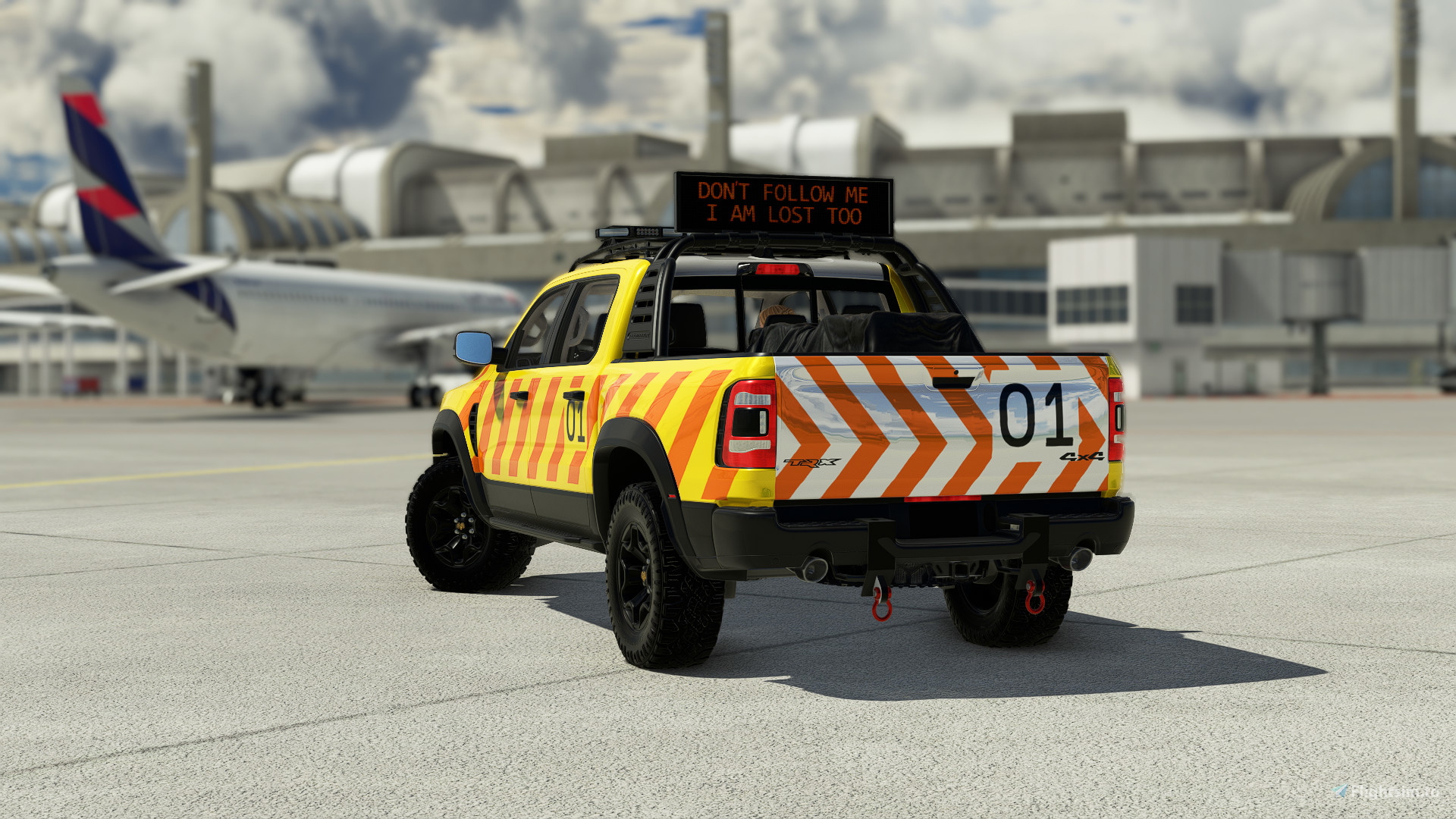 Get ready for a revolutionary Microsoft Flight Simulator experience with the Offroad Pickup Truck, the second vehicle in the Marine RM Service Car series, a player-controllable ground vehicle that adds a completely new dimension to your favorite flight simulator as allows real interaction in Cop-Op Online matches where you can guide your friends in aircraft for landings or takeoffs in heavy rain or fog using the Airport Follow Me version.