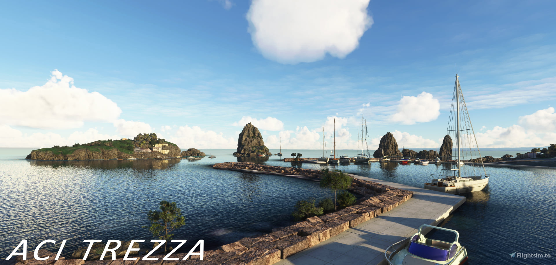 Explore over 400km/250mi of enhanced Italian coastline, for hours of VFR fun. Rocks, cliffs, boats, yachts, docks, harbors, marinas, palms, working lighthouses, moving harbor crane lifts, parasols, night lights, animals, and more have been added to improve the overall quality of the coast, which by default is flat and dull. Landmarks have been added to the world map so you can easily plan your trip.