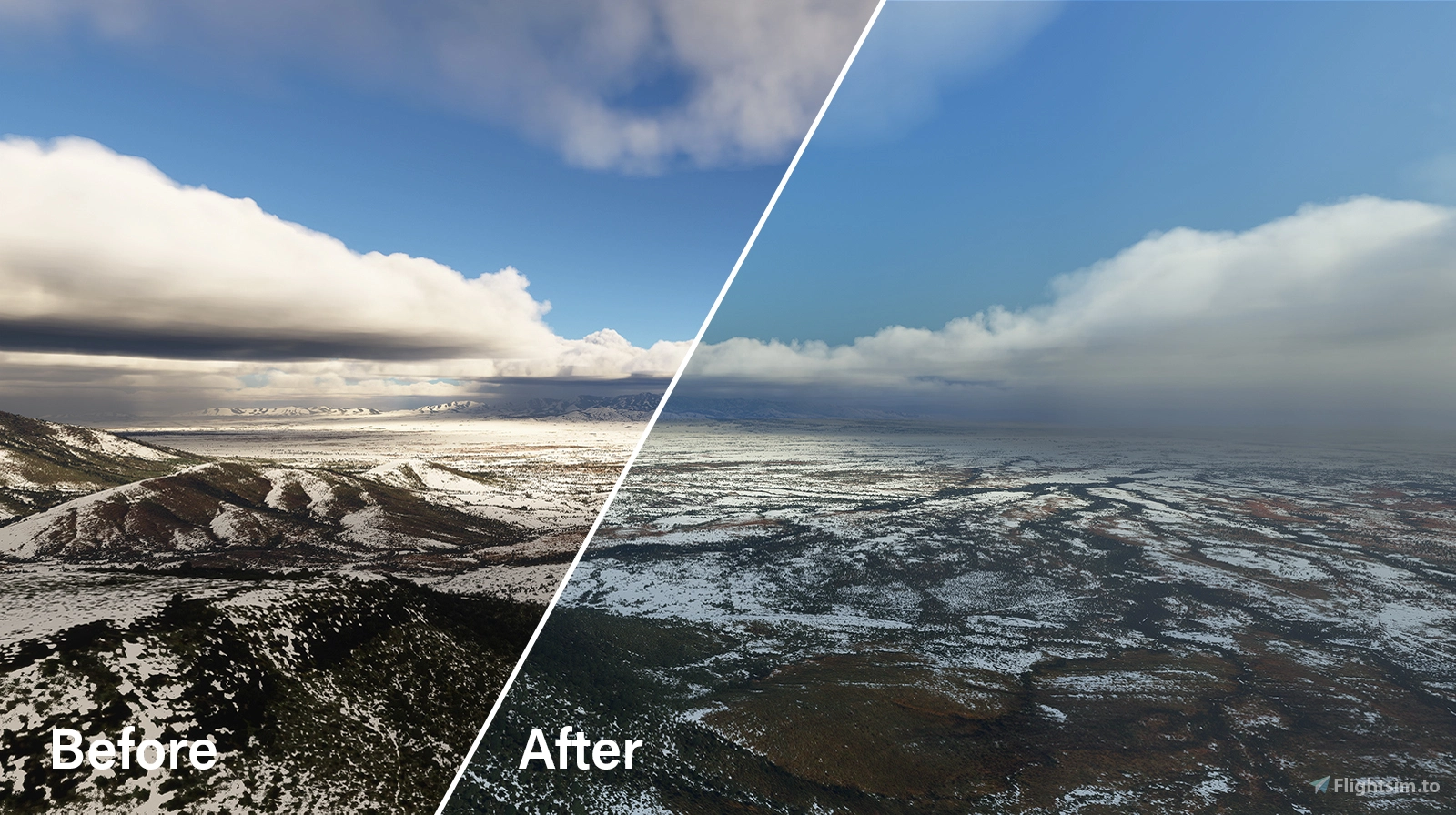 REX Atmos addresses the occurrence of overly dark cloud coloring (commonly referred to by the community as “ash clouds”) within the simulator, replacing it with beautifully rendered, natural looking clouds that enhance the overall visual realism. You can customize this feature to your liking, just like all the other features in REX Atmos!